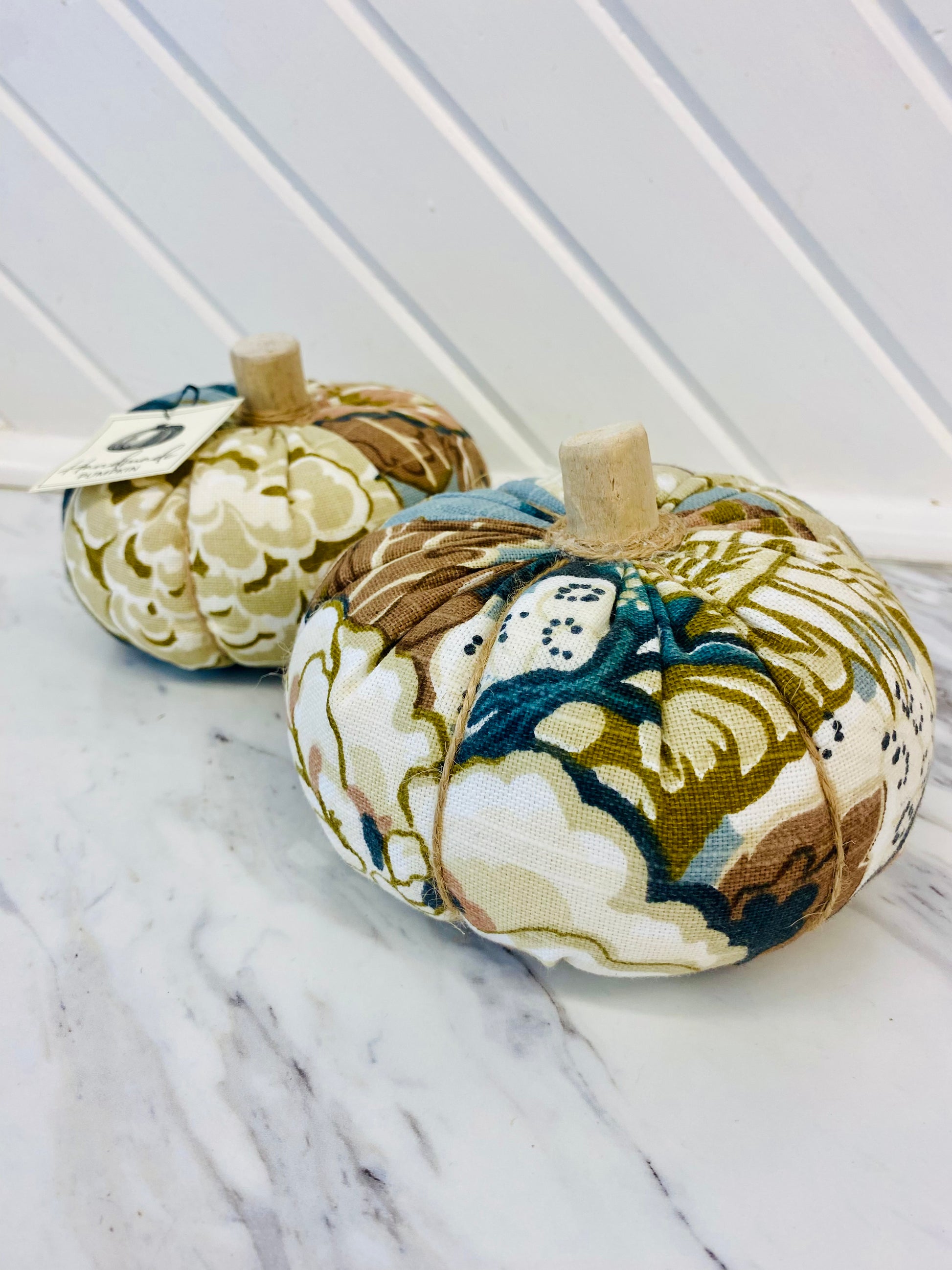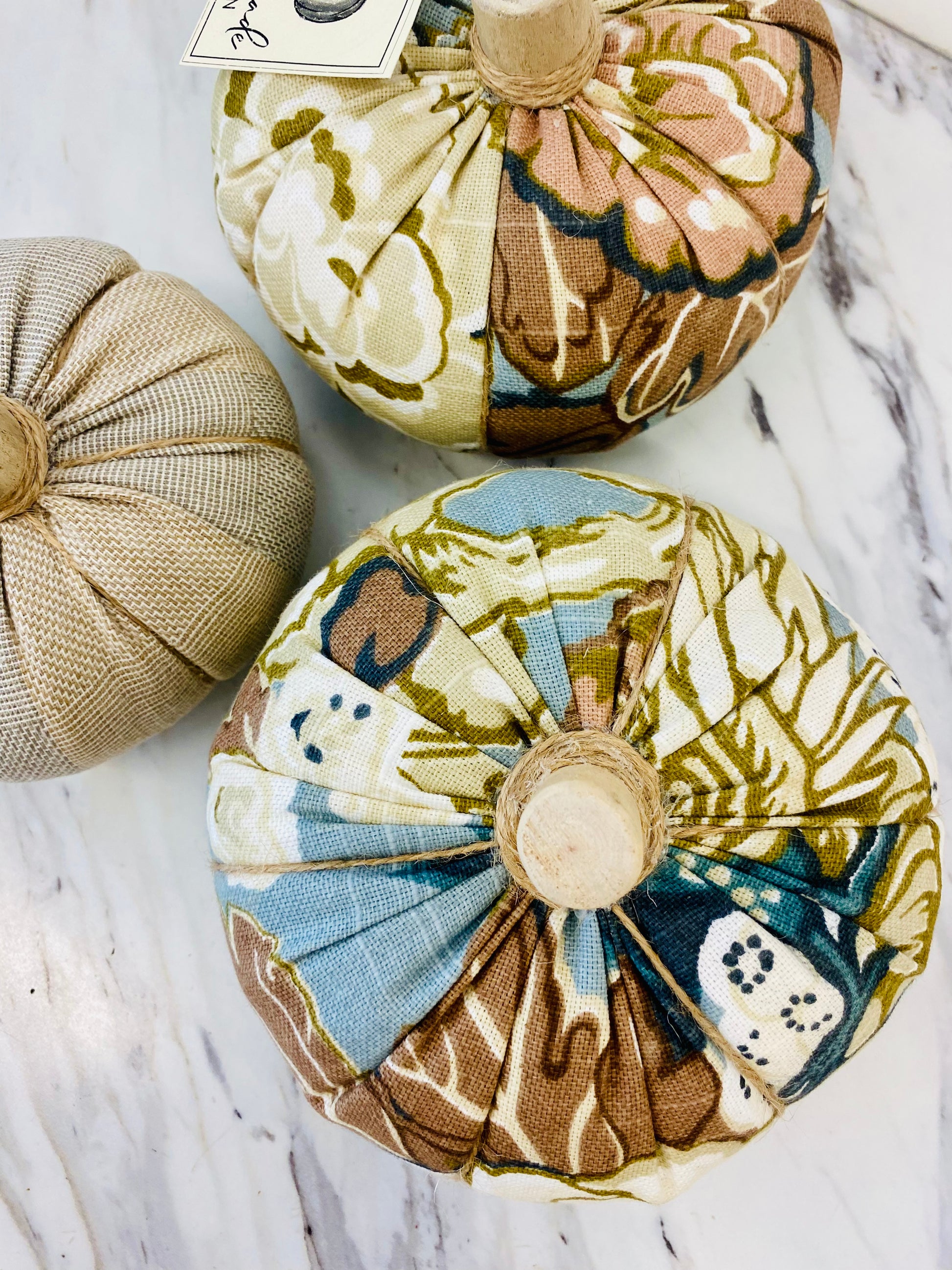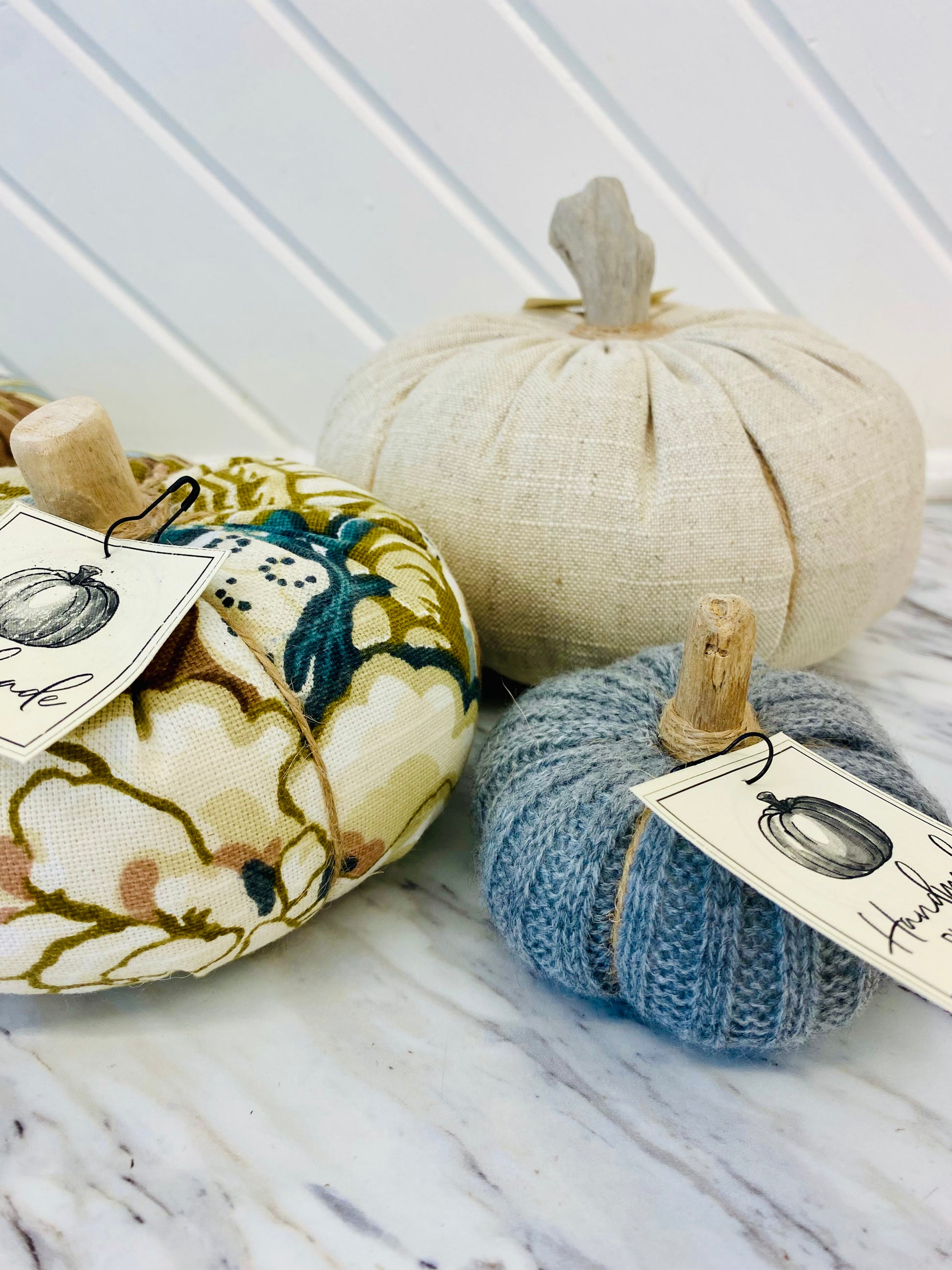 Beautiful pumpkins in a variety of textiles and styles handmade in Wellesley, Ontario by Corkum Cove Collection.