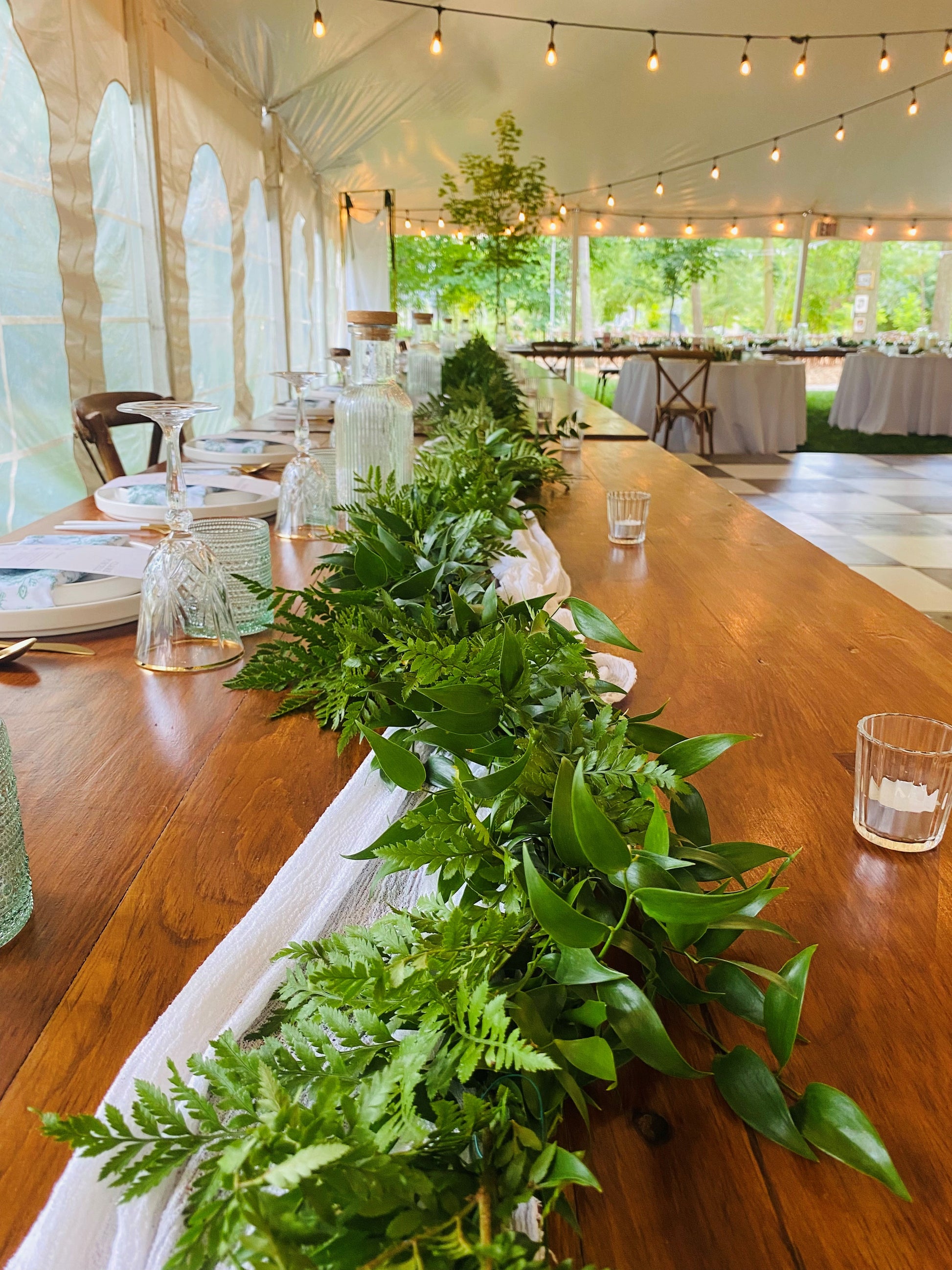 Elegant italian ruscus & lush leather leaf garland for wedding, event or home decorating.