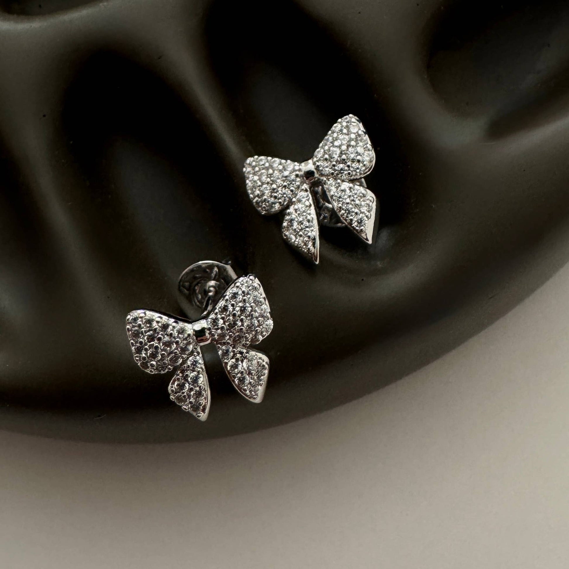 Pave Bow Studs | Silver